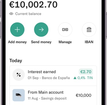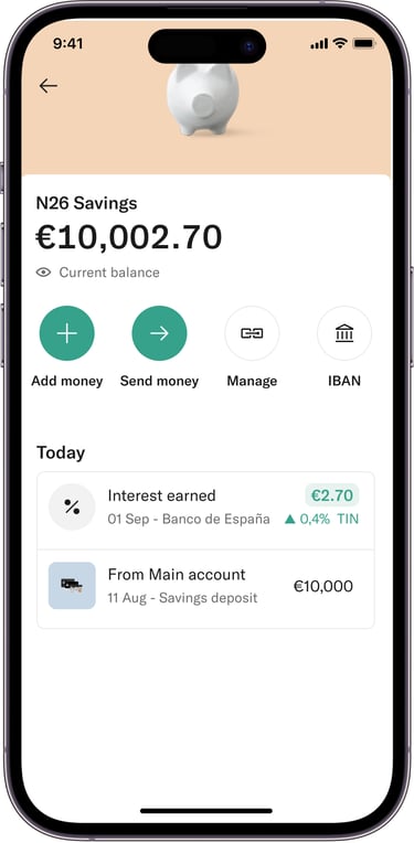 Scenario 1: Receive an inheritance of €10,000 and decide the best way to save it. Create and fund a savings account within the N26 app.